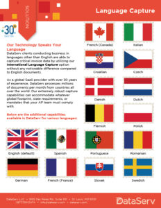 DataServ’s Language Capture extracts, classifies, and validates invoice data across multiple languages, ensuring seamless accuracy and efficiency in AP workflows.