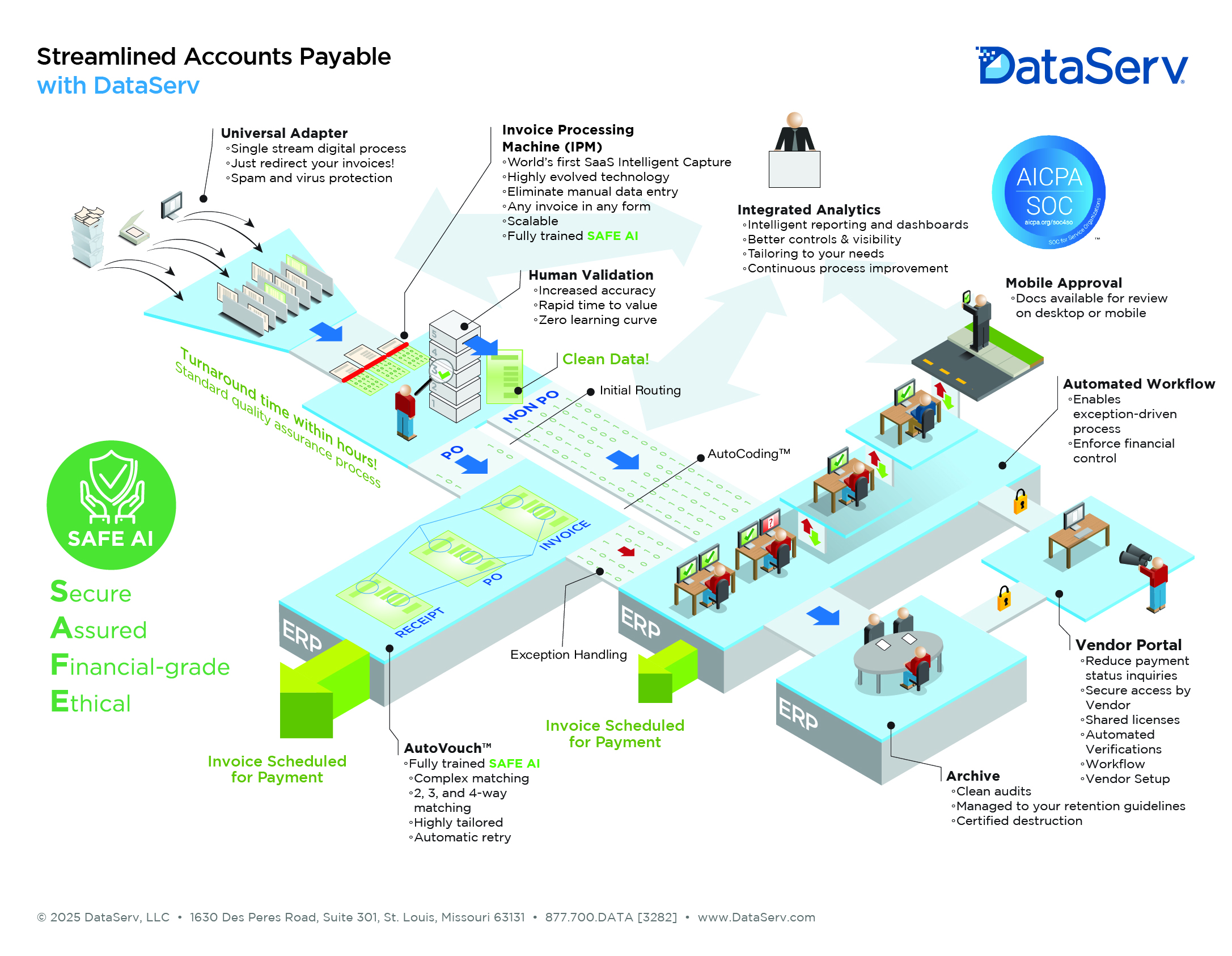 Download the infographic to learn more about streamlining your AP Automation with DataServ and how we compare to a typical internal AP structure.